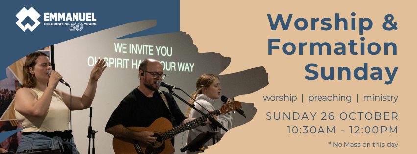 Please note, we will NOT have Mass on Sunday 26 October, but you are invited to join us for our Worship & Formation Sunday.